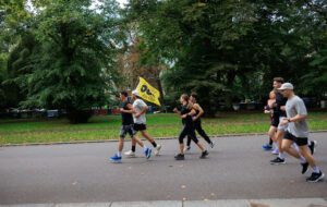 The story told by the building itself – designed by Heike Hanada, an architect and professor at the Bauhaus University in Weimar – is more unexpected. Its monolithic concrete cuboid form, devoid of windows, is more akin to rationalist architecture – a pared-back form of neoclassicism developed in Italy – than it is to any familiar articulation of Bauhaus design, with an interior that is equally severe. A set of stairs slices through the three floors of the building, forming a vertiginous diagonal cut that you can look down through from the top stair. At the upper landing is a window looking out over the countryside, where you can just make out a tower atop a hill. It is part of a memorial designed by Fritz Cremer that marks Buchenwald, one of Germany’s largest former concentration camps.