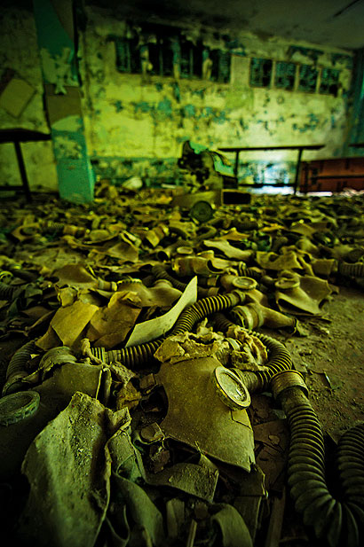 The “gas mask room” – the gas masks are all child sized (image: Bryan Allen) Pripyat was a showpiece of the Soviet Union’s planned economy, built for the workers of what was intended to be the largest power plant in Europe once all its six proposed reactors were fissioning away. Tours start at its central landmark, the Palace of Culture. The murals depicting brotherhood and abundance are flaking, but still bright. The palms in the shattered planters are dead, but a 25ft birch is thriving in the first-floor sports hall. From the double-height picture windows there’s a good view of another delight for the photographers: a yellow ferris wheel. The ferris wheel – also a memorable feature in the numerous computer games set in Pripyat – stands in a fairground, along with stalled dodgems grazing on moss and a carousel so badly rusted it resembles forgotten agricultural machinery. Another popular destination is the airy swimming pool, empty of water and thick with dust, powdered insulation material fallen from the ceiling and covering the cracked plastic floor. But for urban explorers, the real high point is the so called gas mask room. In one room of the city school, part of the floor is covered with child-sized gas masks. Sightless eyes thick with dust, corrugated tubes snaking and tangling, the gas mask room is an eerie spectacle. More than any other place, it reminds you that Pripyat is not an innocent ruin, but was deserted in the midst of a major catastrophe – that the exodus was an eruption of terror and dislocation in thousands of innocent lives. The gas mask room is contentious, though. The gathering of the masks might be deliberate. This might not be as they were left in the throes of evacuation. They might, in fact, have been arranged here for more effective sentimental impact – to form, as Allen puts it, “the absolute simulacrum of decay”. Urbexers in the past might have constructed a more ghostly sight for urbexers of the future. For himself, Allen doubts the rumours: “I honestly don’t think it’s as contrived as people think it is.” Neither of us, none of us, have any way of telling whether it’s real or not. This question, however, opens up a rabbit hole of further questions. Elsewhere, the school is thoroughly trashed. Barely a book remains on its shelves – they are all on the floors, and gentle decay did not send them there. It’s the work of vandals. If you believe it to be “real”, then the gas mask room has been left untouched in the midst of this destruction, perhaps out of respect, or superstition, or simple admiration of its spooky charm. In this context, then, its undisturbed, shrine-like nature is, in itself, a form of contrivance. It has been very deliberately and very obviously left undisturbed by many people over a long period. Something else heightens the sense that what we are seeing has been mediated by unknown others. In this macabre place, there is a visitors’ book. This touristic accessory, more suited to a National Trust property than a city hollowed out by a nuclear accident, is a bizarre intrusion. But the urban explorers set it up for a reason. Because Pripyat is hard to reach, and few will ever make the journey, they want to prove that they were there. But the urbex ethos is founded on the same rule that is drummed into visitors to natural parks: leave no trace. Do not disturb what you find. Leave it in its “natural state” for others to enjoy. The urban explorers look down on vandals and taggers, who smash and scrawl, even as they depend on them to open up new routes into closed sites. But they still want evidence of their visit. Hence the visitors’ book. It’s an artefact that expresses the joy of successive explorers at finding themselves in the inner sanctum, the holiest of holies, the object of their pilgrimage. (The religious language is apt – the difficulty of the journey is an important, perhaps the most important, part of the experience, just like a pilgrimage.) Allen says arrival in Pripyat is attended by a “quasi carnival” atmosphere for urban explorers – many of the entries in the book are celebratory, elated, not sombre. It’s a paradox within urbex, this desire to reach out and share an experience with others, given the pursuit itself is so solitary. Urban exploration stems from a desire to be outside normal limits, to walk where others do not, in a world that is deserted and untouched. It is not the search for great wild spaces, wildernesses, where no humans have ever walked. Nor is it the same taste for melancholy that underpinned the ruinlust of the 18th century. It’s a vicarious exploration of a post-human world, a place where humans have been and departed. It is a palatable taste of anthroterminus, the end of us all, an excursion that permits a return to the buzzing human sphere. Once back there, the pictures can be shared. But what builds up, from all those arty shots of moss choked beds and crumbling plaster, is an unrealistic overall picture. “You get the impression from looking at the forum images that it is this compressed place, that there’s an amazing sight around each turn,” says Allen. But Pripyat and the zone are far larger than that, more spread out, and there is much that the photographers leave out. What gets lost, in the hunt for really choice rot and collapse, is the abundant, thriving plant life that is my dominant memory of the zone. “It’s people really trying to hold on to this nostalgic view that the zone is a world in decline,” says Allen. “And it’s not, it’s really quite the opposite.” |