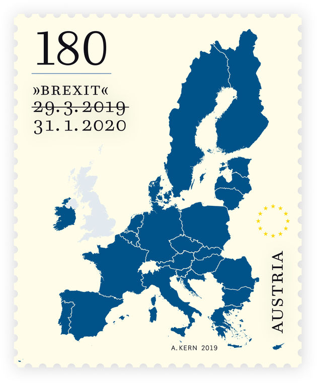 On 31 January 2020, UK released a Brexit 50p coin with an inscription ‘Peace, prosperity and friendship with all nations’ to mark the official date of leaving the European Union. This is not the country’s first attempt, as a batch of such coins dated 31 October 2019 had to be melted down after the UK missed that particular deadline for Brexit. Austria’s postal service came up with a more elegant solution, however. After having printed commemorative Brexit stamps bearing the earlier date of 29 March 2019, the small Alpine nation’s postmasters simply decided to run the stamps through the printing press again, striking though the original date and placing the correct one below.