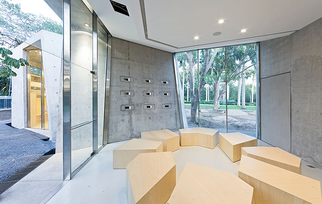 Tatiana Bilbao has recently completed the first four buildings of her masterplan for the redevelopment of the Botanic Gardens of Culiacán in Mexico. The project involves the installation of 36 site-specific artworks by some of the world’s leading contemporary artists, such as Gabriel Orozco and Olafur Eliasson, as well as the creation of 16 pavilions housing a range of functions from horticultural laboratories to cafes and seed libraries. After six years, the scheme is only now approaching its halfway point. At first, the project was envisioned as the installation of a selection of art works donated by a collector who sits at the head of the garden’s board of patrons, but as the project grew it became apparent that the improvements required an overarching structure. “They decided the project was too ambitious to just put the artworks there so they invited me to develop the masterplan,” Bilbao explains. Her strategy was to upgrade the botanical facilities and create visitor centres in order to “reinforce the most important collection that the garden already had, bringing it to at least the same level as the art”. Organising the plan is a diagram abstracted from images of a tree in the garden. Somewhat arbitrary, yes, but it makes for an interesting variation to the familiar meanderings of 19th-century gardens. The diagram helps organise not only the location of the pavilions but also their forms. Completed thus far is a separate open auditorium displaying an introductory video, as well as a cluster of three buildings that surround an artwork by the collective Tercerunquinto: a closed multi-purpose auditorium, a service building and an educational room for children. The buildings are realised in a simple but confident angular concrete idiom with warm timber furniture and details.
