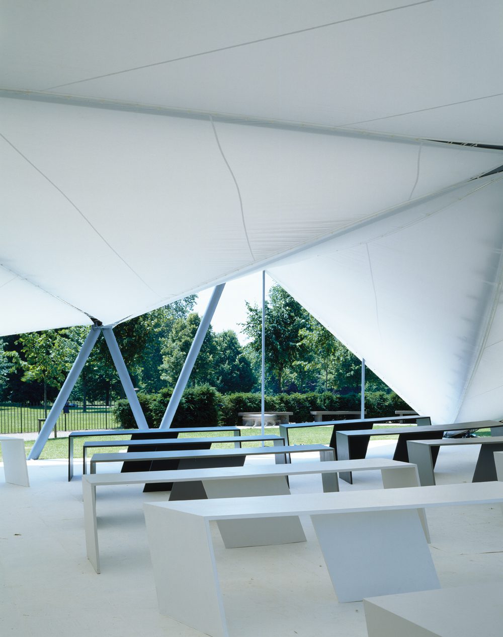 Photography by © 2000 Hélène Binet featuring Serpentine Gallery Pavilion 2000 designed by Zaha Hadid