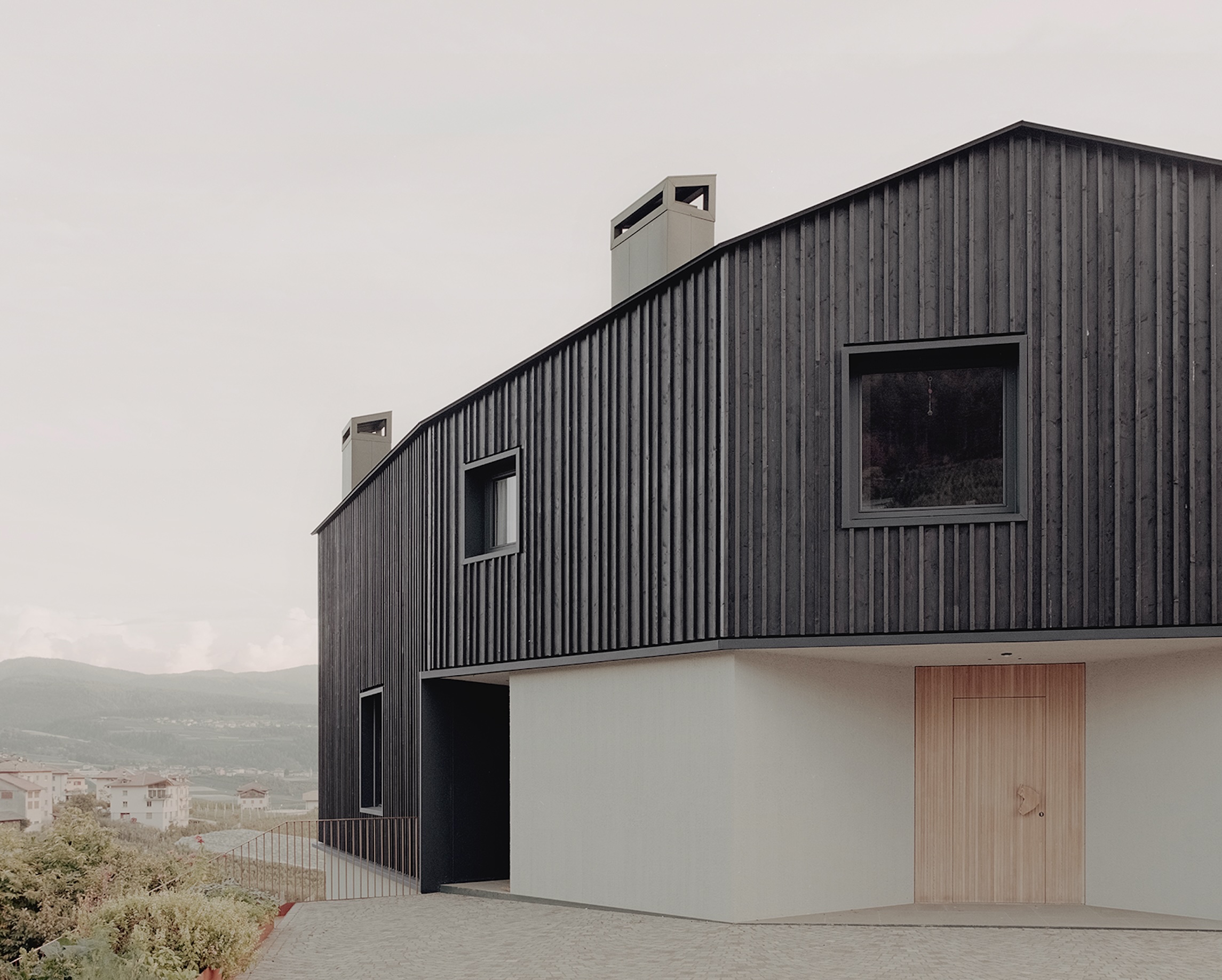 Set among the apple orchards of Val di Non, this private residence reimagines local traditions through the use of black-treated larch timber and a considered material palette, all framed by the breathtaking Brenta Dolomites