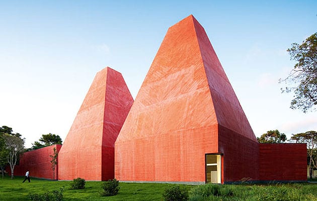 House of stories is a museum dedicated to figurative painter Paula Rego designed by Portuguese architect Eduardo Souto de Moura. Casa das Histórias Paula Rego (its full Portuguese title) opened to the public in September in Cascais, 30km west of Lisbon. Two large pyramid-shaped structures of equal size, one housing the bookshop and the other a cafe, tower over an assembly of volumes of differing heights. The two-storey, 3,000sq m building has a tall central section housing the 180sq m temporary exhibition space, surrounded by six permanent exhibition rooms totalling 630sq m, and a 200-seat auditorium. The differing heights of the exhibition areas reflect the varying sizes of the paintings on show. With the House of Stories, Souto de Moura has adopted a regionalist approach, in contrast to the modernist abstraction of previous work, such as his Braga Municipal Stadium in Portugal, completed in 2003. The inspiration for the pyramids came from historic buildings in the Cascais region. “Souto de Moura refers to the National Palace in Sintra,” says Ricardo Prata, one of the project leaders. “It has two big volumes; they are not pyramids but very high chimneys. And the monastery of Alcobaça, which has a kitchen with a big chimney. The idea was to create some parallel with these important buildings in the region.” Souto de Moura was also influenced by Portuguese architect Raul Lino, who built houses for wealthy families in the area in the 1920s. “The geometrical ideas in the House of Stories also began in those kinds of buildings,” says Prata. The building is concrete, and the timber formwork has given the facade a lovely uneven surface. “The idea is to have a building that is sensitive to the surrounding garden,” says Prata. “It’s close to the texture of the trees.” The museum is in a walled garden in the centre of the town, and the building is meant to “work with the garden, and to be an independent object, a symbol or beacon for the town,” says Prata. The inscrutable, rust-coloured forms are broken only by a series of openings cut out of the corners. “The idea is to just have one opening per room, in the corner, so that you have controlled lighting, and to give that monolithic aspect to the building,” says Prata. Rego chose Souto de Moura for the €4m building herself and had some early input into the design. “The type of geometric shapes Souto de Moura has used and the fact that the building is red has something to do with the imagination of Paula Rego,” says Prata. Rego has been based in London since the 1950s, but spent her childhood and adolescence in the Cascais region, in the town of Estoril. |
