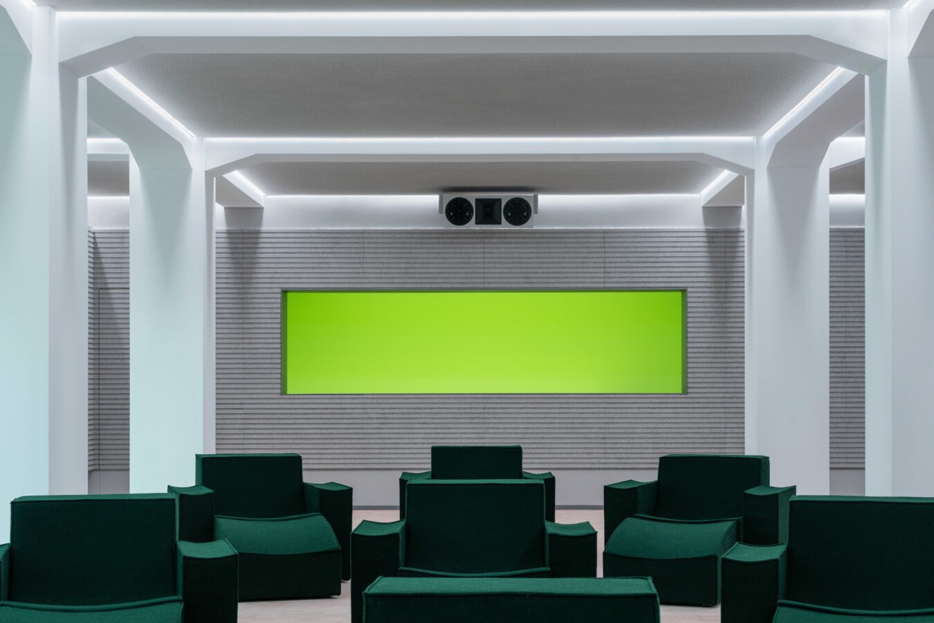 The musical roots of the Triennale Milano, the museum of modern art and design, have been brought back to life with the opening of Voce, a vibrant new space dedicated to music and sound. Housed in the former spaces of the Old Fashion nightclub, it is located inside the Bernocchi Palazzo dell’Arte on the southern side of Parco Sempione, where the Triennale boasts a rich and storied history dating back to 1923. The building was originally designed by Milanese architect Giovanni Muzio, who in 1933 undertook the challenge of creating a new typology of exhibition space. His solution was to conceive a structure that prioritised a functional, flexible and modular system – one that could accommodate a host of exhibitions and installations, as well as provide a multifunctional performance space.