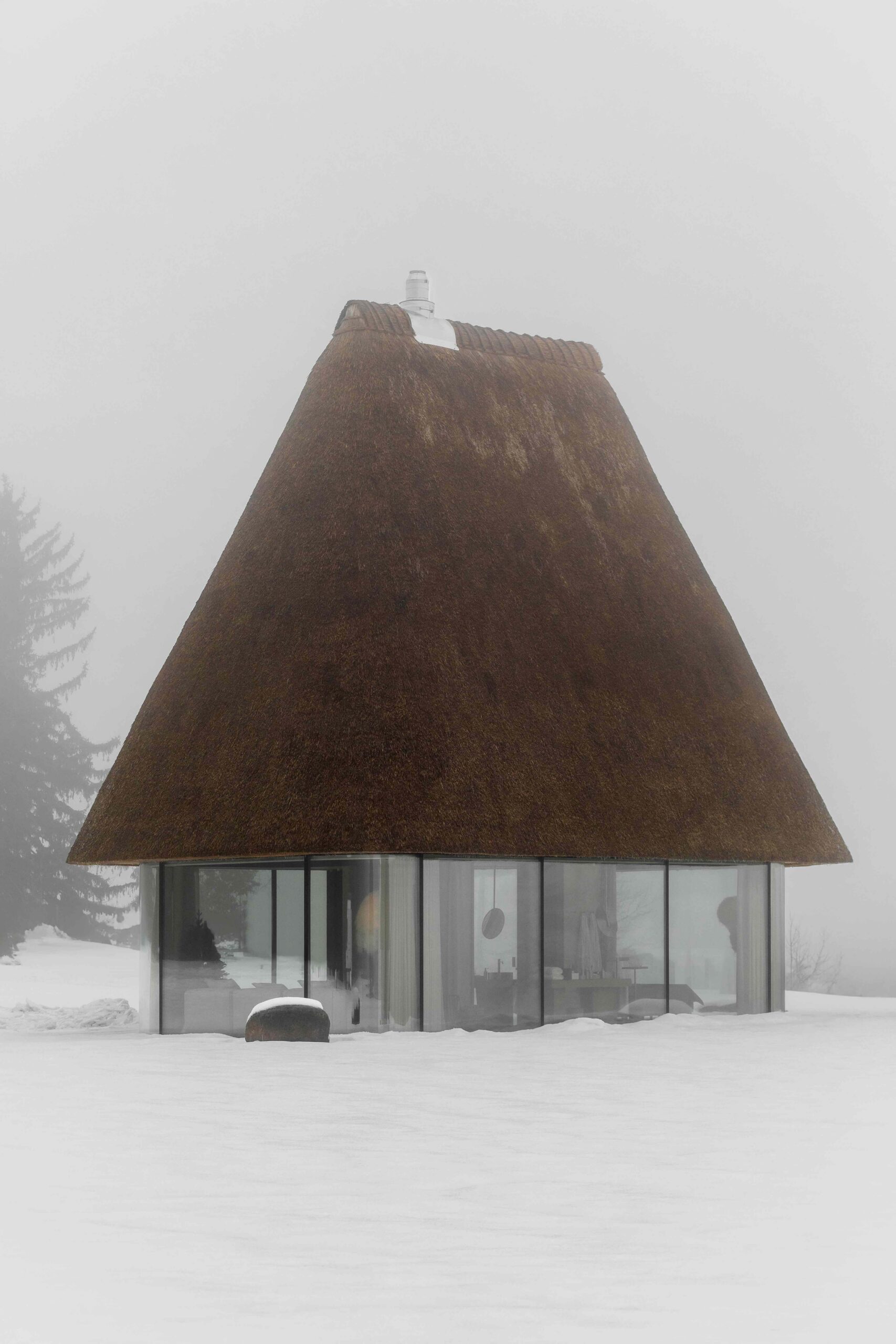Set on a private estate in central Ukraine, YOD Group’s guesthouses rethink the traditional Ukrainian hata-mazanka through glass facades and a sculptural thatched roof