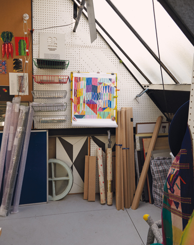 Pattern for the Guadalupe daybed attached to a wall of Wood’s studio |