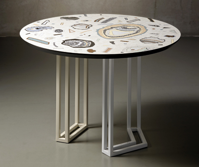 Moon Rock table, a private commission, 2011 Since a residency in Mexico City in 2013, the result of being chosen by W Hotels as one of its Designers of the Future that year, the country’s vibrant colours and culture have been a clear influence on Wood’s design and fashion. To beat the January chill of her studio, she offers to layer me up with some of her elaborate Mexican ponchos – a further surreal touch to my visit and something we agree she can pull off far better than I can. Accompanied by her Mexican assistant Fernando Laposse, the trip was an induction to the real Mexico, “not Google Mexico”, Wood says. “I’m a very visual person so the multi-sensory experience you get when you do a residency works really well for me in terms of new ideas.” Briefed with the question, “What happens when global is local and local is global?”, Wood was determined to seek out something other than the generic understanding of Mexican culture. The work she produced in response was Criss Cross: a collection of chandeliers, sconces and lamps (she calls them blooms) that reference Mexican flower garlands sold in the city’s street markets. The designs have interchangeable pieces that evoke the methods of arranging flowers. The “petals” were made with Mexican coloured-glass specialist Nouvel Studio, and the Pyrex connecting tubes were hand blown by glass artisan Pietro Viero in Italy, with whom she made Totem. Criss Cross interprets a unique aspect of Mexican culture without straying into cliche, and its candy-like range of colours, influenced by chilli sugar lollipops also found in the market, were a source of delight when debuted at Design Miami Basel in 2013, and later in Wood’s solo show at the Aram Gallery. |