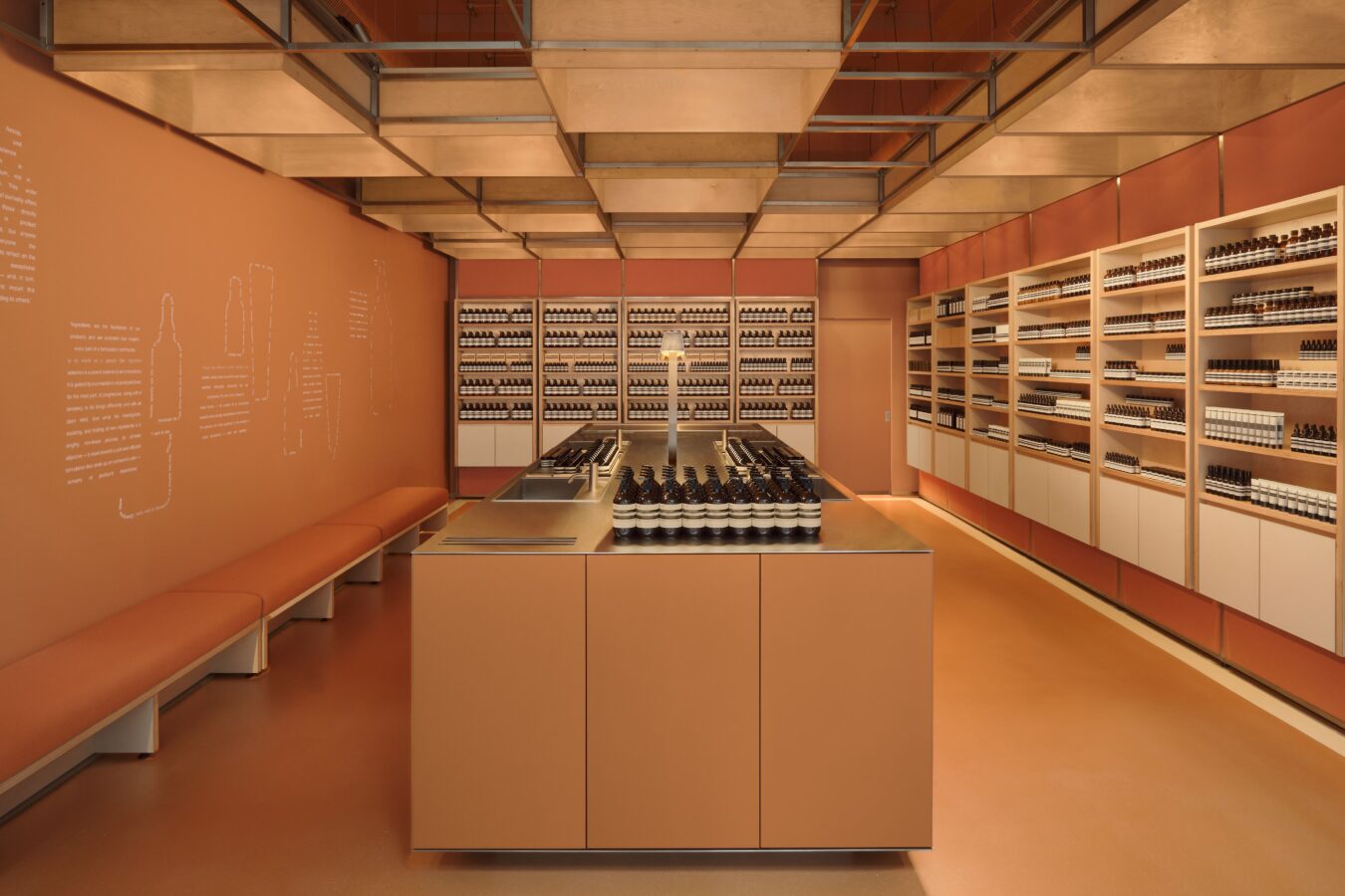 Photography courtesy of Aesop showcasing the interior of its Marylebone location with interiors handcrafted by Sebastian Cox