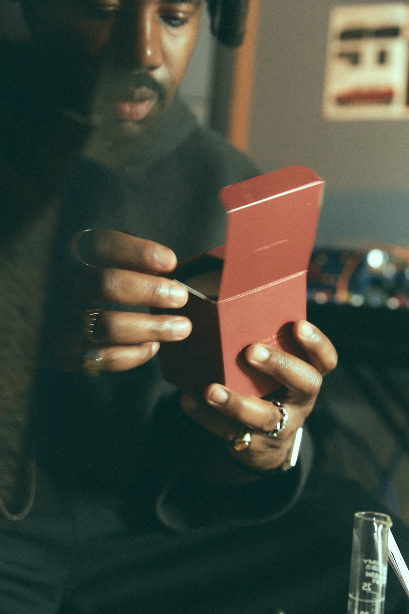 ‘Rather than recreating the music itself, we focused on capturing the album’s overall mood,’ explains Dafkos on how Earl of East reflected the rhythm of the album in the fragrance. ‘The result is a calming, reflective and earthy scent that evokes the intention and atmosphere Sampha wanted – a moment to pause and connect, much like listening to the album.’