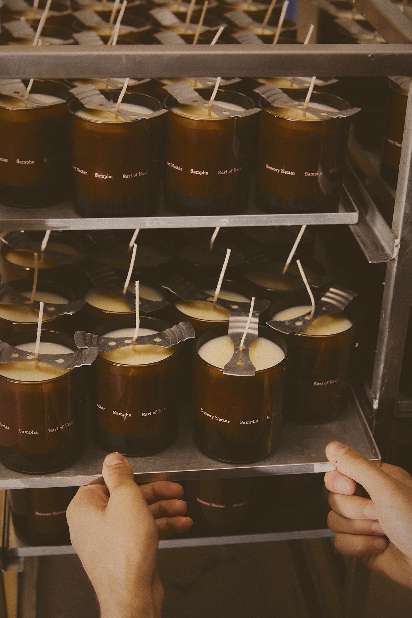 Crafted from essential oils and produced in small batches entirely in-house, Sensory Nectar was honed through a blind smell test at Earl of East’s Soho flagship. Seven rounds of meticulous refinement produced the finished composition, with natural variations in the raw materials giving each candle its own character.