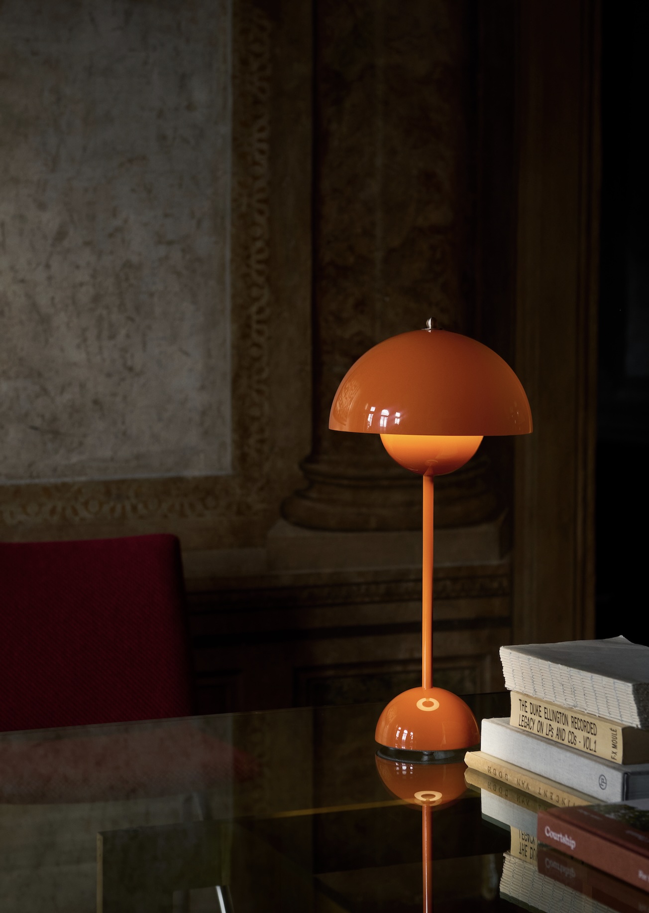 Photography courtesy of &Tradition featuring Verner Panton’s Flowerpot VP9 lamp in Zesty Orange