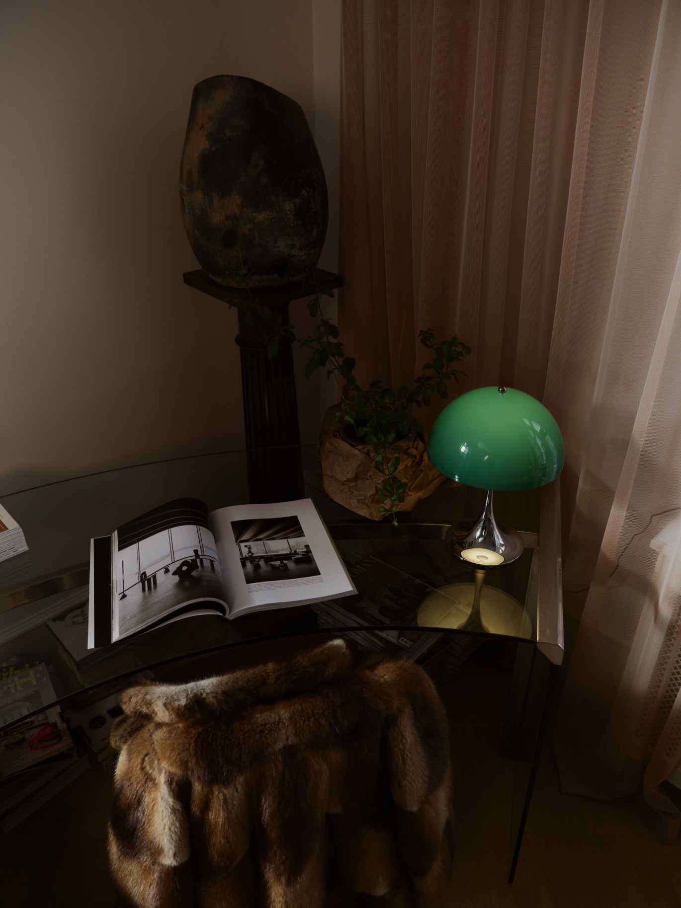 The lamp is part of Louis Poulsen’s Originals Collection, which will be released in two stages. The first, arriving in February, features the Panthella 160 and 250 Portable Lamps. The second, due in autumn 2026, introduces the Panthella Floor Lamp. All models are offered in shades ranging from Original Opal Brown to Blue Grey, Green and Red, each finished with a high-lustre chrome base.