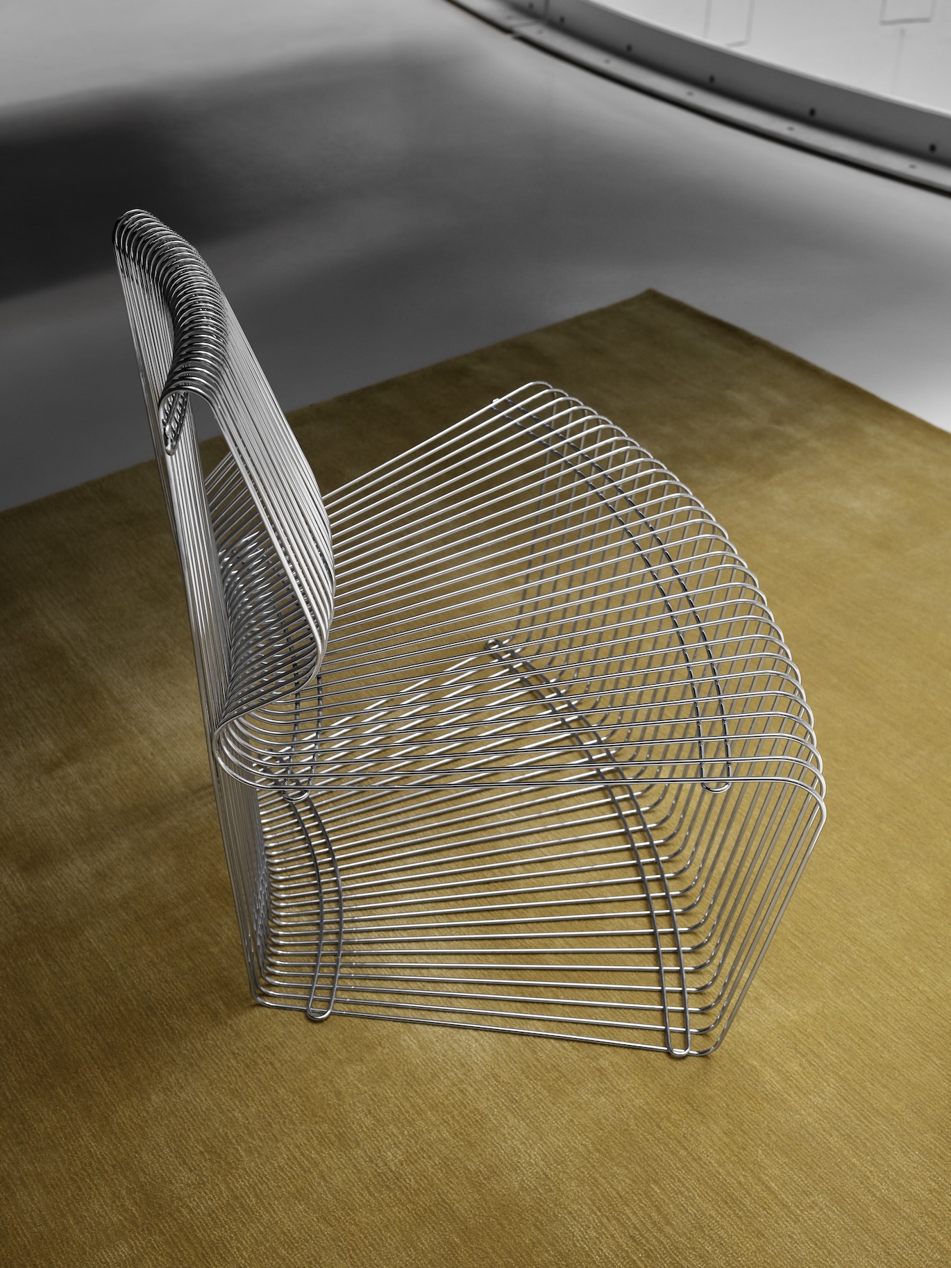 In 1971, at the height of space-age glamour, Verner Panton unveiled the sinuous Pantonova System for the legendary Danish restaurant Varna. This modular wireframe design, composed of three sculptural elements – Linear, Concave and Convex – distilled the decade’s experimental spirit.