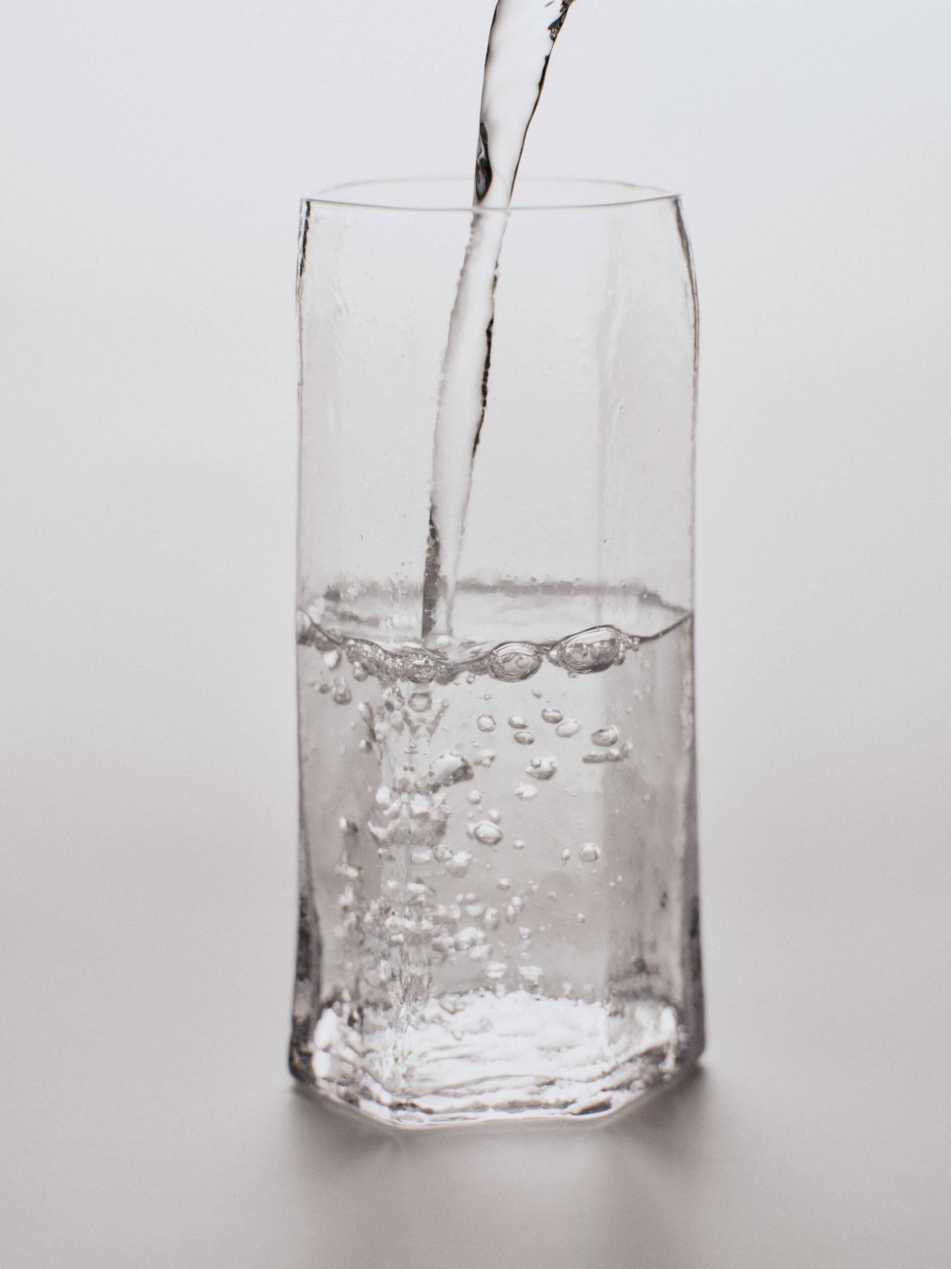 Crafted from mouth-blown, 100% GRS-certified recycled glass, each piece begins as a hand-carved clay form that is translated into a mould, allowing ceramic texture to be pressed into the glass. The result is a collection of refined yet expressive glassware, fusing craftsmanship with everyday functionality.