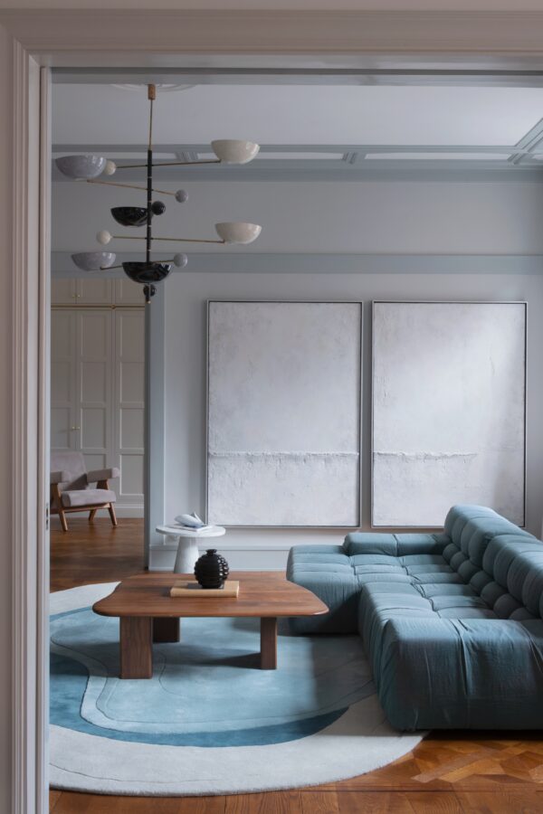 Be it interiors, furniture or art, Bratsberg’s sculptural sensitivity remains prevalent throughout his many creative endeavours. And, in breaking free from strict design boundaries, his organic aesthetic seemingly reflects his own design journey. Having worked for ten years in finance, Bratsberg took a career change, turning to design in 2019. ‘I felt a strong urge to break free from rigid forms, perfect alignments and symmetry,’ he says. ‘In a world where production rationalisation has often taken priority, a certain artistry in our aesthetic environment has been lost. I wanted to return to real craft, while exploring ornamentation in a contemporary way.’ Designing both residential and commercial interiors, alongside statement works of art and functional furniture for the home, Bratsberg strives for freedom and fluidity across each discipline. ‘Art is my most exploratory area,’ he continues, ‘where I can freely test and develop forms and expressions. And, when the opportunity arises, I can translate them into more functional pieces, as happened with the Lozza rug.’