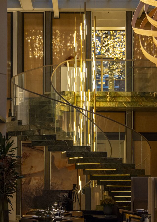 With the hotel attracting visitors from all over the world, this installation is certainly adding a magical touch to people’s festive experiences. ‘I wanted to create something that spoke to everyone in that sense, that everyone could relate to,’ he continues. With guests able to view the chandelier while dining at the Atrium Restaurant or before an exclusive chef’s table experience at Somssi by Jihun Kim, the immersive, sensorial nature of it is one that creates its own atmosphere within the space. ‘I hope visitors feel a sense of engagement with the piece,’ Broom says. ‘As you move up or down the staircase, the light shifts around you and envelops the space creating quite a mesmerising moment.’