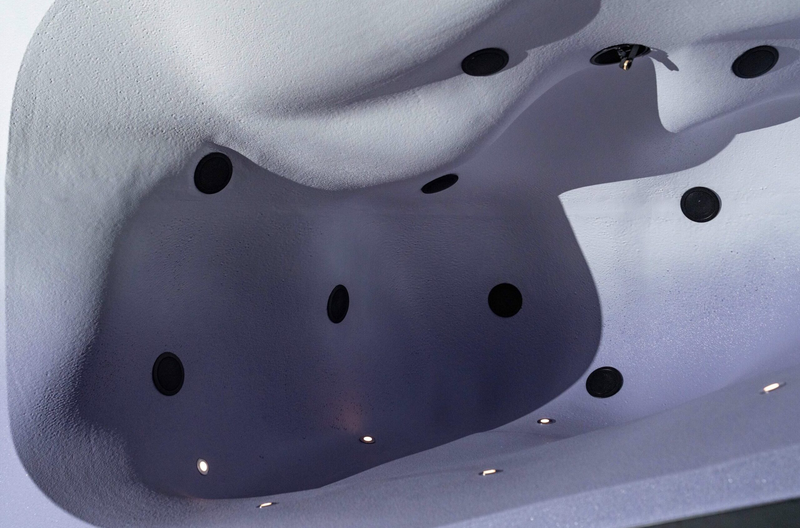 With natural shapes, light and sound working together, the aim was to create something that feels instinctive. ‘The interaction with your breath as the guiding vehicle is such a natural way of interacting,’ Rokebrand adds. ‘From this idea it evolved into material sampling, training an AI over months and thousands of interactions with people breathing.’