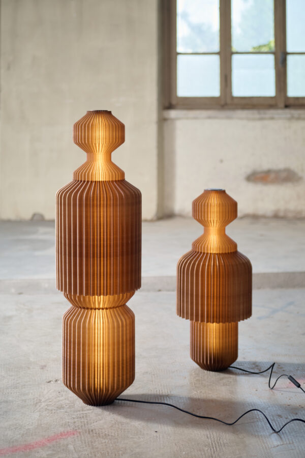 The Buoy Collection, which he released in 2021, established an aesthetic the designer has since continued to build upon. Consisting of a series of lightweight 3D printed lamps inspired by the forms of buoys at sea, they exude a sculptural flair while using as little material as possible irrespective of their size. Crafted from PLA, a thermoplastic derived from starch, Zito says how the material he uses influences almost 100% of the technique. ‘Then the technique creates the object and often, after some time, the object takes over and gets translated into other material,’ he says.