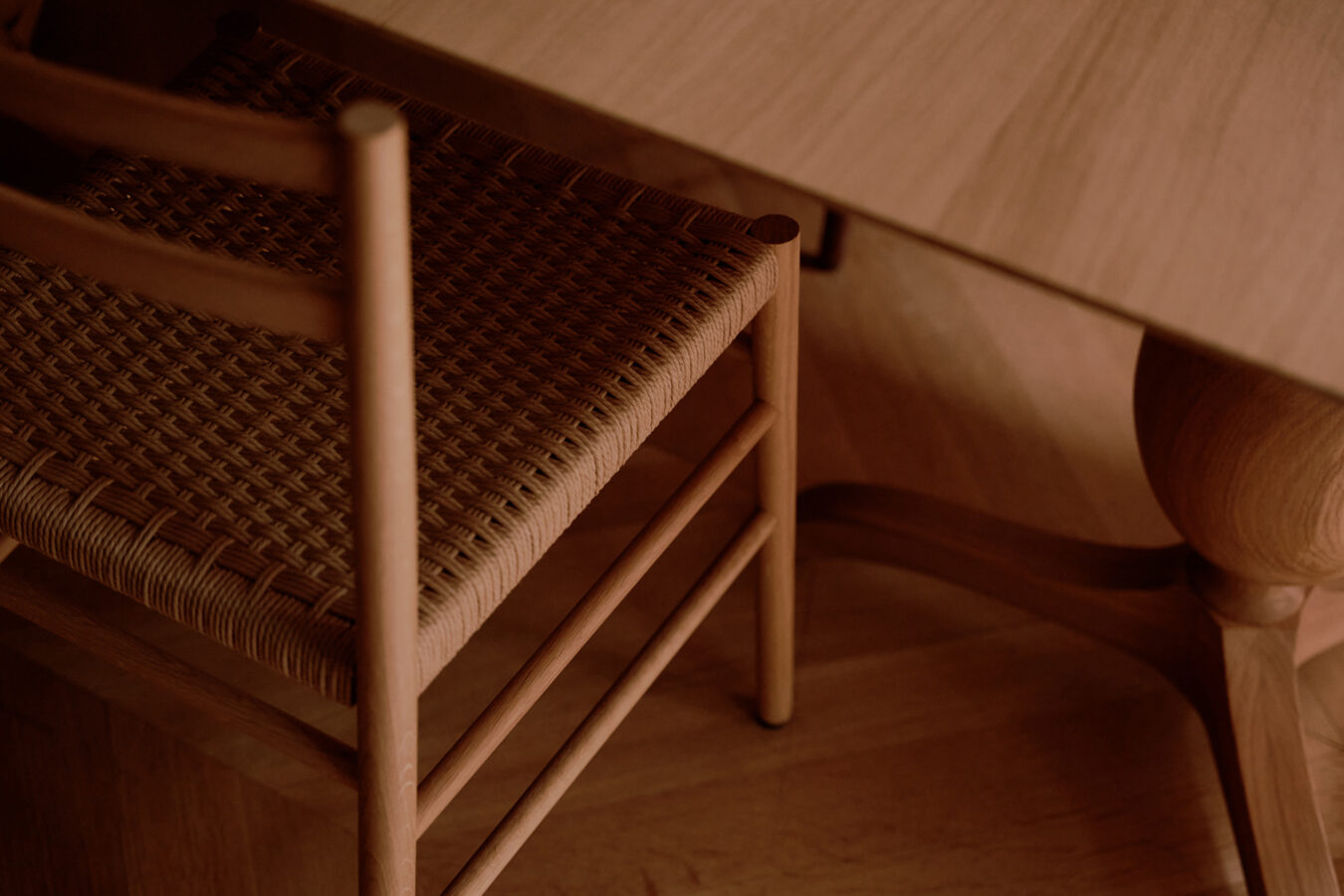 Photography by William Jess Laird, The collection reaffirms the studio’s appreciation of natural materials with the handwoven Avery Dining Chair specifically referencing the Arts & Crafts movement