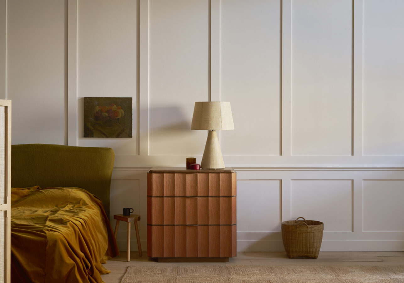 The collection includes a dining chair inspired by the Arts & Crafts movement, an extending dining table, a sculpted chest of drawers, a coffee table that references the aged appearance of antique mirrors and a ‘press’ inspired by the form of an antiques clothes press. Alongside a bench, bedside table and pendant, the full collection pays homage to the signature PINCH aesthetic and this deep-rooted connection to nature. ‘It embodies many of the precious qualities found in nature,’ explains Oona, ‘such as soft forms, gentle curves, scalloped detailing, inviting materiality and a comforting tactility. It is both nourishing and energising, with a textural depth that offers dimensionality for creating calm and safe spaces. There is a meditative, quietly engaging pace that feels soothing.’