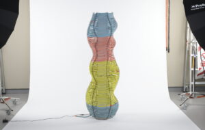 Strips of felt rolled into cones and cornets form the basis of design studio Raw-Edges’ new Coiling Collection. By treating these coils with jesmonite, an acrylic resin, and attaching simple wooden struts, Raw-Edges’ Yael Mer and Shay Alkalay have created a playful range of chairs, carpets and tables. Underpinning the project is a single, bold idea – material as both upholstery and structure. “Coiling is not about stretching the felt, but more like when you play with a tailor’s tape measure, when you coil it and then push the centre into a cone,” explains Mer. The collection is something of a curio: it takes felt’s familiarity as upholstery and adds the novelty of it acting as a frame. The coils seem like they might unravel at any moment or flatten when compressed under weight; that they do not is owed to the jesmonite. The resin soaks through the surface of the felt, congealing into a hybrid material with a rigid and permanent form. “We like the contrast. The appearance of the felt as a simple, warm, soft, natural and old material and on the other side the silicon, which is more technical, futuristic, glossy, sophisticated material,” explains Mer. “We also think that there is something direct and naive about the project.” The Coiling Collection’s simple colours and soft, undulating curves create a strange sense of nostalgia – the primary school furniture you’ve always dreamed of. The project is also reminiscent of Raw-Edges earlier works. The concentric felt rings remember the interlapping paper sheets of its 2009 Grove – Revolving Trees, a limited-edition art piece. And the collection’s tricking of non-supporting material to act structurally is the kind of irreverent move rehearsed in 2008’s Tailored Wood – chairs created by piping expanding foam into veneer husks. But Mer cautions that the resemblance is not intentional: “Usually we don’t try to find one style or language that will group our designs together,” she says. “We focus on the principle of each individual project.” The collection has been exhibited at the FAT Galerie in Paris, but Mer is careful to emphasise that the duo would like to continue to refine and expand the concept. “We are thinking of making tableware, so after using them you can choose whether to clean them in the dishwasher or in the washing machine. And we hope to get the chance to take it into a bigger project. Maybe interiors … or a coiled building?”
