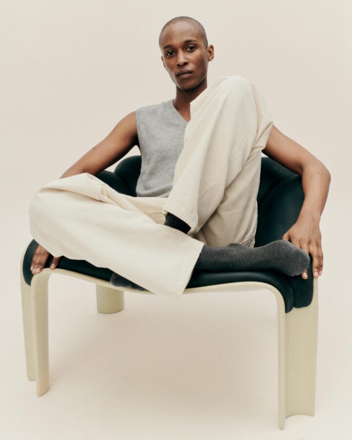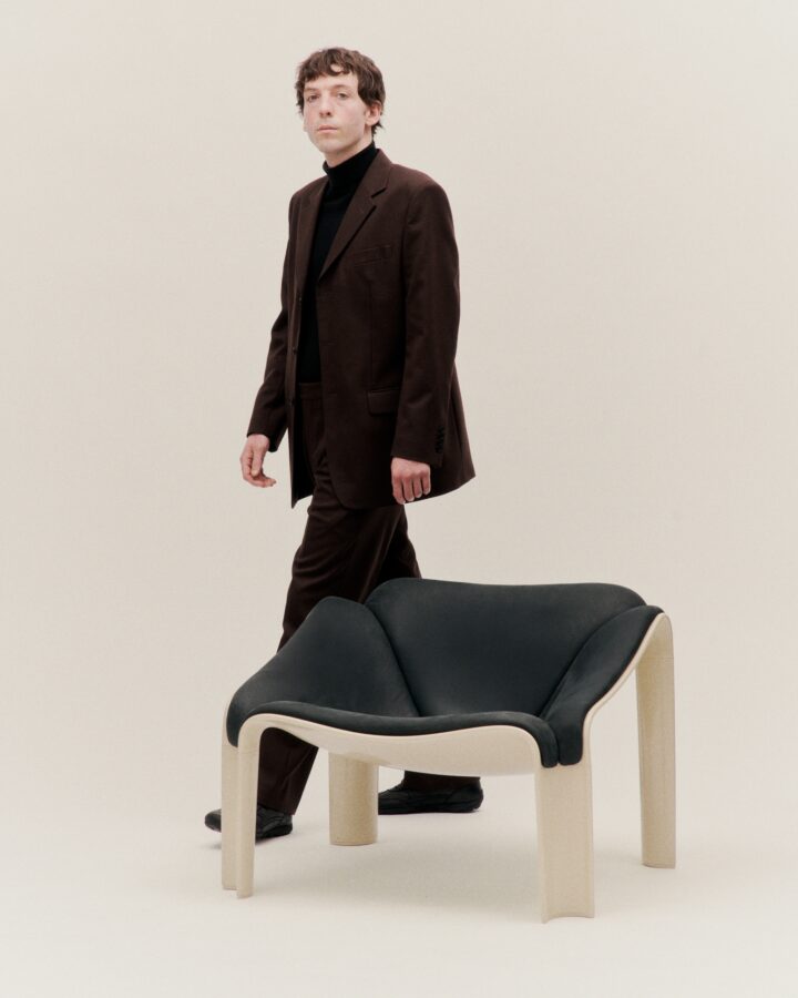 In GUBI’s campaign for the relaunch – inspired by the work of pioneering Bauhaus artists Josef and Anni Albers – the chair and table are presented in a way that echoes Paulin’s desire to design environments rather than isolated objects. It shows people using the chair in a variety of ways, reflecting both Paulin’s