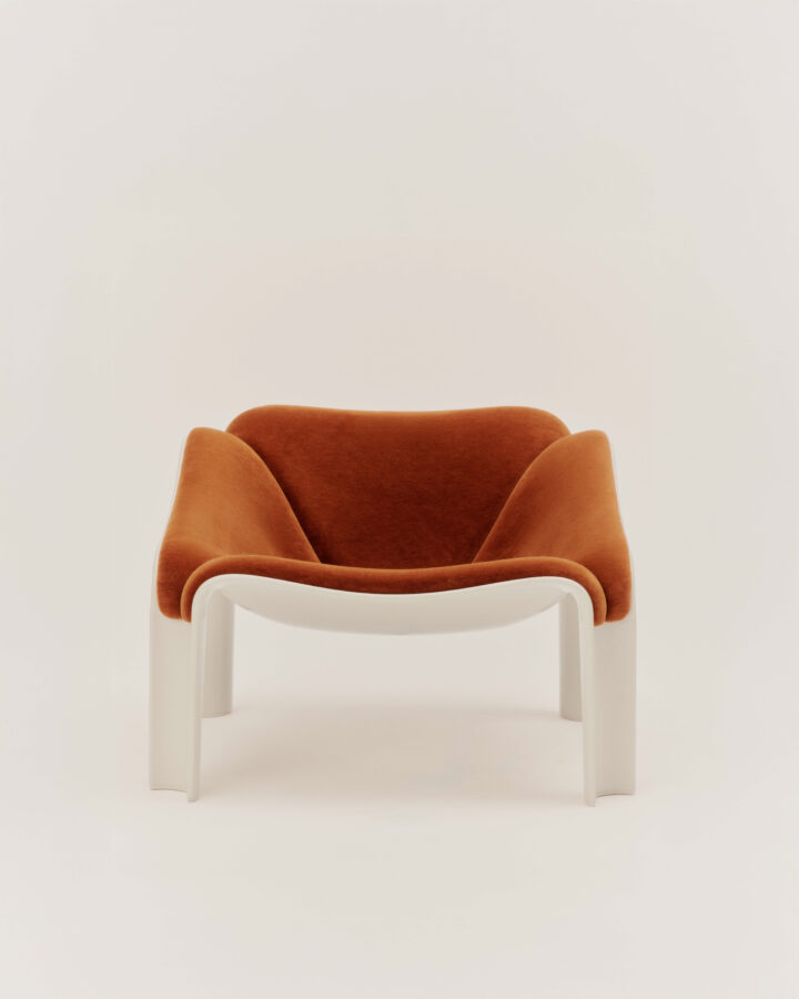 The F300 was radical even among Paulin’s many ground-breaking works. Its monolithic form is defined by generous curves that encourage the body to sprawl, perch or lounge with ease, challenging the way more conventional seating typologies dictate one ‘correct’ way of sitting. ‘It’s about freedom and it’s exactly why the F300 resonates so strongly with contemporary audiences,’ says Schmidt. ‘That mix of radical form and real comfort is what makes it an enduring icon – it’s still futuristic today.’